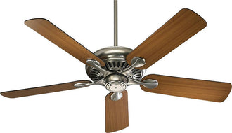 The Pinnacle 52" 5-Blade Ceiling Fan in Satin Nickel is a masterpiece of both form and function. Its sleek satin nickel finish brings a touch of modern elegance to any room, while the reversible teak and walnut blades offer versatility to match your decor. The fan's traditional style seamlessly blends with various interior themes, making it an ideal addition to both contemporary and classic settings.