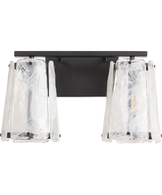 Picture this 2-light Bath Vanity Light in your home or office. Refresh your room with this Matte Black -finished Bath Vanity Light by Quorum.