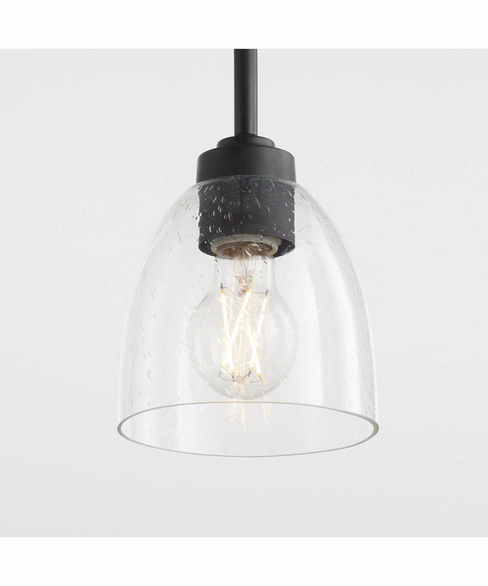 The textured black finish of this pendant light exudes a sense of understated elegance, making it a versatile addition to any room. The clear seeded shade not only adds a unique texture but also allows the light to shine through beautifully, creating a warm and inviting atmosphere. This combination of finishes ensures that the Reyes pendant light will complement a wide range of color palettes and interior designs.