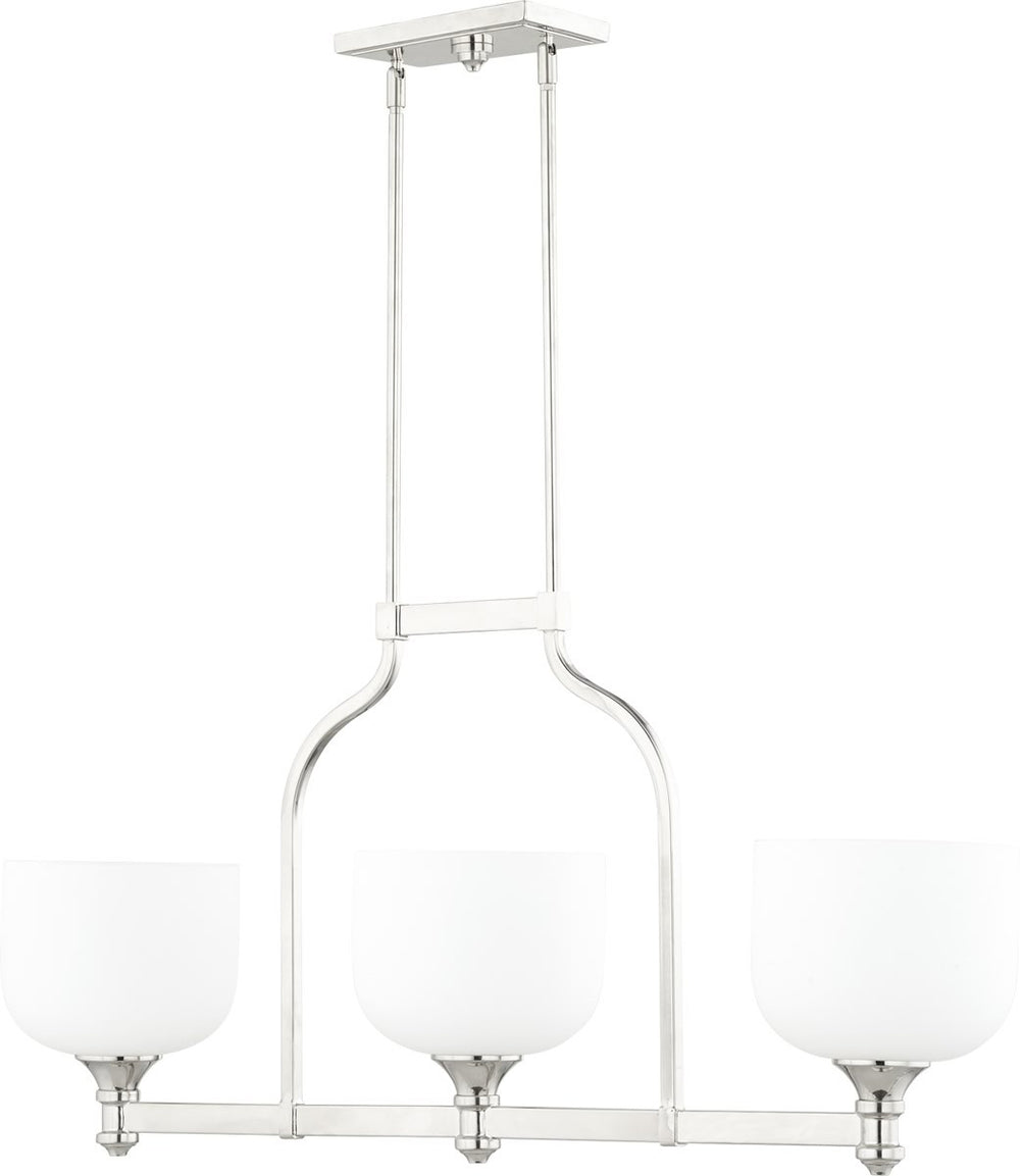 Recap: The Richmond 3-light Kitchen Island Light by Quorum features a polished nickel finish, transitional style, and satin opal shades. Measuring 18" in height, 38" in width, and 8" in depth, it accommodates three 100-watt medium-base bulbs (not included). Ideal for kitchens and dining areas, it complements various room themes and ensures both style and functionality. Order yours today and elevate your home décor.