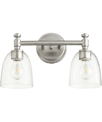 Picture this 2-light Bath Vanity Light in your home or office. Refresh your room with this Satin Nickel w/ Clear/Seeded-finished Bath Vanity Light by Quorum.