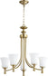 Picture this 5-light Chandelier in your home or office. Refresh your room with this Aged Brass-finished Chandelier by Quorum.
