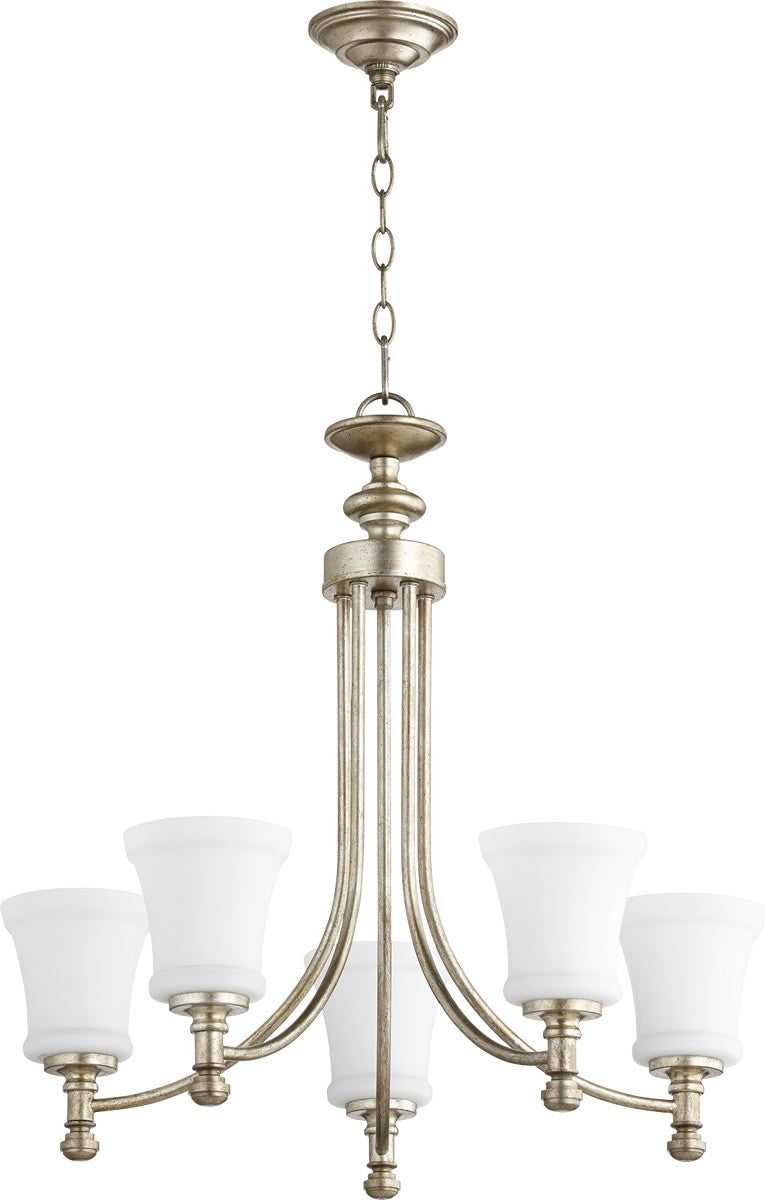 Enhance your home with the timeless elegance of the 25"W Rossington 5-light Chandelier in Aged Silver Leaf. Its exquisite design, premium quality, and versatile style make it a perfect addition to any room. Don't miss out on the opportunity to transform your space with this stunning chandelier. Order now and experience the perfect blend of beauty and functionality.