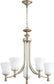 The Rossington chandelier is crafted with meticulous attention to detail, ensuring a high-quality finish that stands out. The Aged Silver Leaf finish gives it a luxurious and antique look, while the Satin Opal shades provide a soft and inviting glow. The combination of these elements creates a stunning visual impact, making this chandelier a focal point in any room. The chandelier measures 25 inches in height and width, making it an ideal size for dining rooms, living rooms, and entryways.