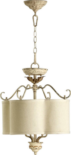 The 18"W Salento 4-Light Pendant in Parchment White by Quorum International is a stunning addition to any home decor. This pendant light features a sophisticated design with a parchment white finish that adds a touch of elegance and charm to your space. The transitional theme allows it to blend seamlessly with various interior styles, making it a versatile choice for any room.
