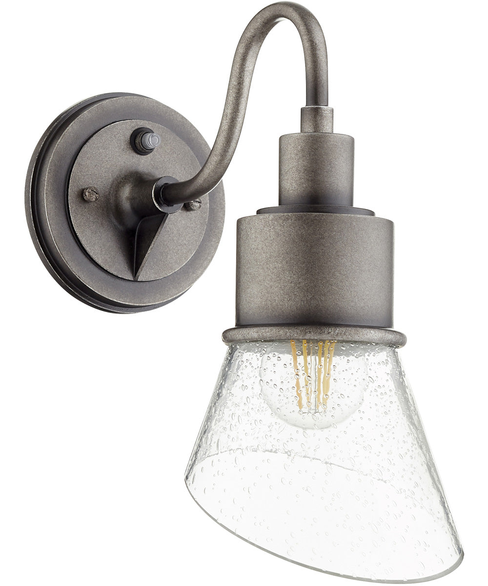 With its charming weathered zinc finish and clear seeded glass shade, the Torrey wall mount light fixture adds a touch of sophistication to any room. Its classic design and high-quality construction make it a timeless addition to your home. Whether you're looking to update your bathroom lighting, add a stylish touch to your hallway, or create a cozy outdoor retreat, this light fixture is the perfect choice.