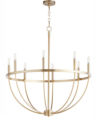 Picture this 8-light Chandelier in your home or office. Refresh your room with this Aged Brass -finished Chandelier by Quorum.