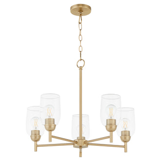 Picture this 5-light Chandelier in your home or office. Refresh your room with this Aged Brass-finished Chandelier by Quorum.