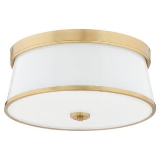 Picture this 3-light Ceiling Flush Mount in your home or office. Refresh your room with this Aged Brass-finished Ceiling Flush Mount by Quorum.