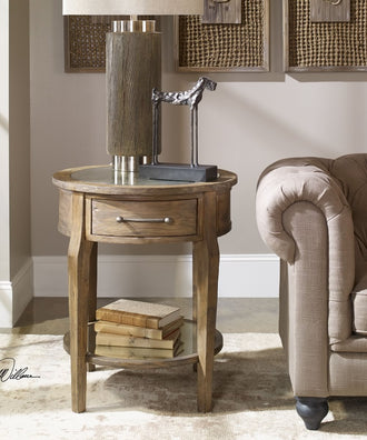 A Rustic Casual And Versatile Look, Constructed From Select Hardwoods With A Mango Veneer, Finished In A Weathered Pecan With A Gray Wash. Inset With Antique Mirrors On The Top And Gallery Shelf, And Accented With An Industrial Bar Pull In Lightly Burnished Iron.Uttermost's Accent Tables Combine Premium Quality Materials With Unique High-style Design.With The Advanced Product Engineering And Packaging Reinforcement, Uttermost Maintains Some Of The Lowest Damage Rates In The Industry. Each Product Is Designed, Manufactured And Packaged With Shipping In Mind.