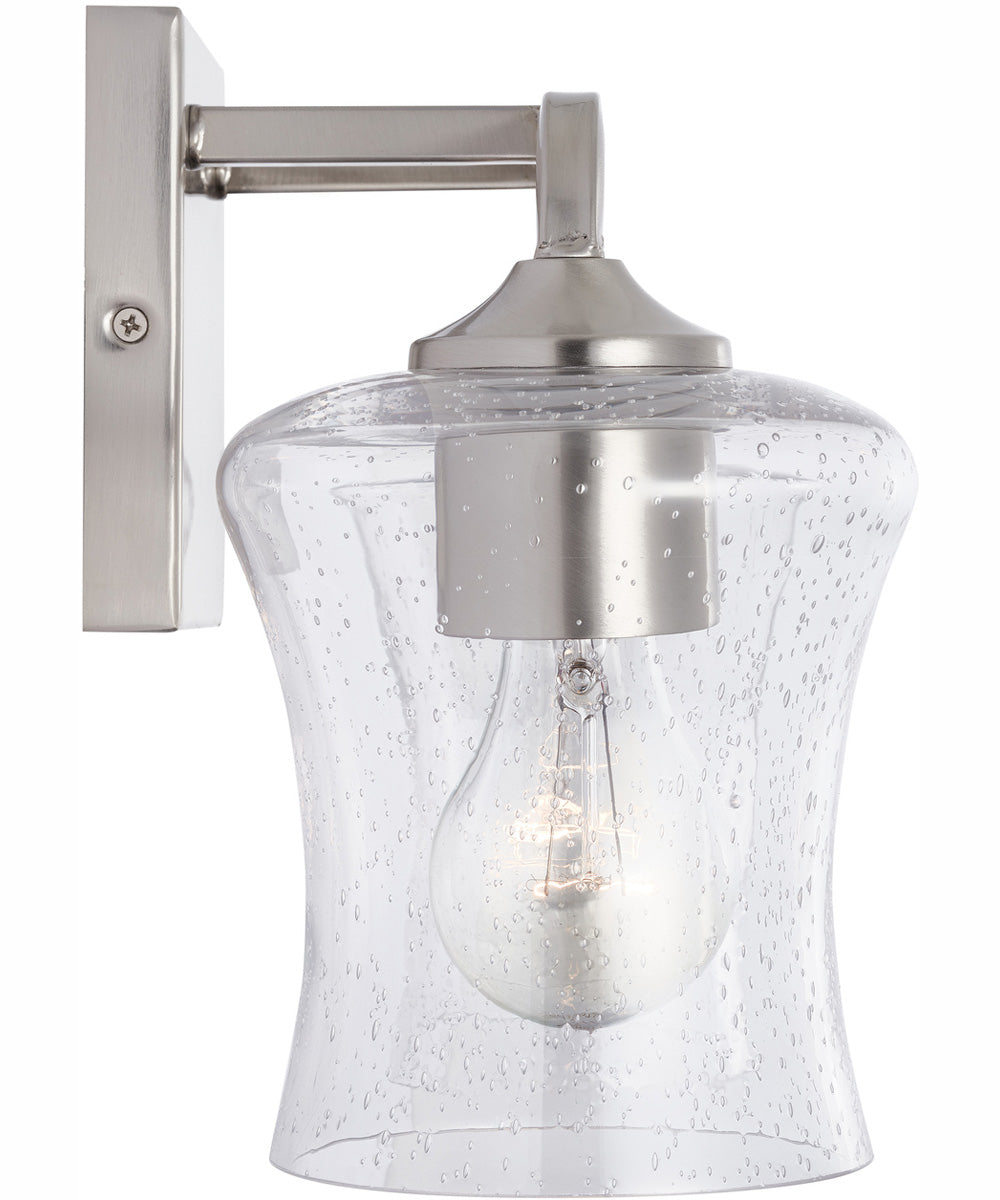 Clean lines and soft curved seeded glass in this collection have a simple aesthetic that works in any space. Available in Brushed Nickel, Matte Black or Bronze as a 2-light, 3-light or 4-light vanity.