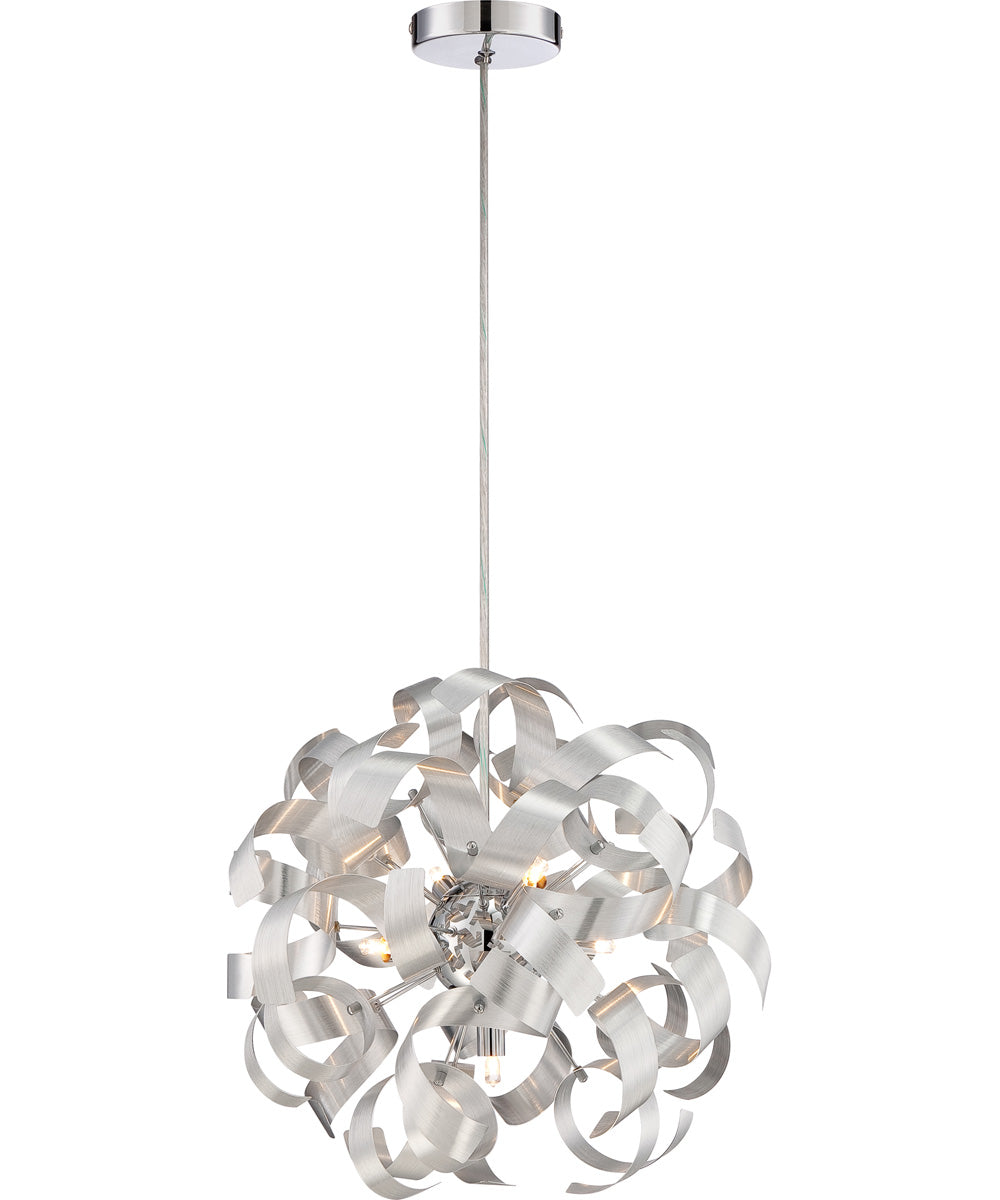 The Ribbons 5-light Pendant seamlessly integrates into various room themes, enhancing the overall aesthetic. Its contemporary design pairs well with modern and minimalist interiors, adding a touch of elegance without overwhelming the space. The swirling ribbon pattern also complements more eclectic and artistic themes, providing a unique visual interest that draws the eye.