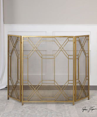 Uttermost 34"H Rosen Gold Fireplace Screen