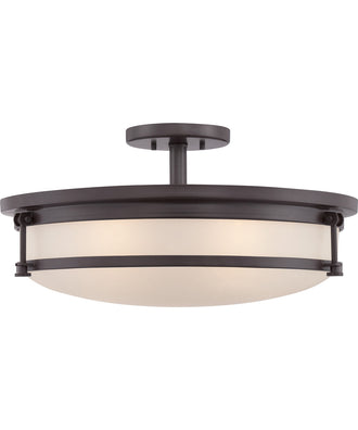 A semi-flush may need a little more ceiling height than a flush mount, but is often useful in a living or family room, bedrooms, a kitchen, a home office or in a basement. They also work well in hallways, bathrooms and smaller rooms.