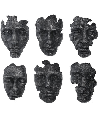 • Features: Inspired by works from modern art galleries, these masks are handcrafted with a sculpted look in a patinated steel gray finish with noticeable metallic details and texture.