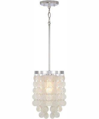 The Shelby 1-Light Pendant in Polished Nickel is a stunning addition to any home decor. Its sleek, polished nickel finish exudes a modern elegance that perfectly complements the translucent capiz shell accents. This pendant light combines coastal cool with a touch of glamour, creating a sophisticated yet relaxed ambiance in any room.