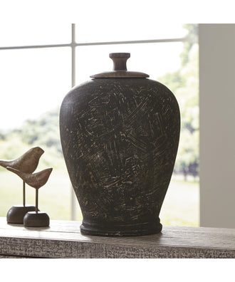 16"H Barric Jar Antique Black