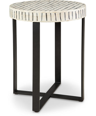 • Constructed of engineered wood and bone inlay in cream and black finish and black finished metal