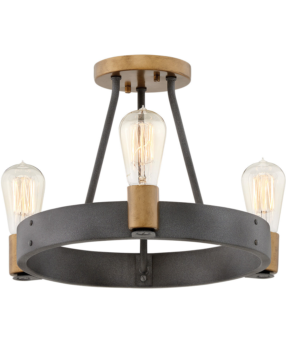 Hinkley Silas 3-Light Small Semi-Flush Mount in Aged Zinc