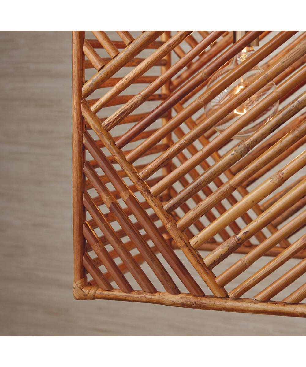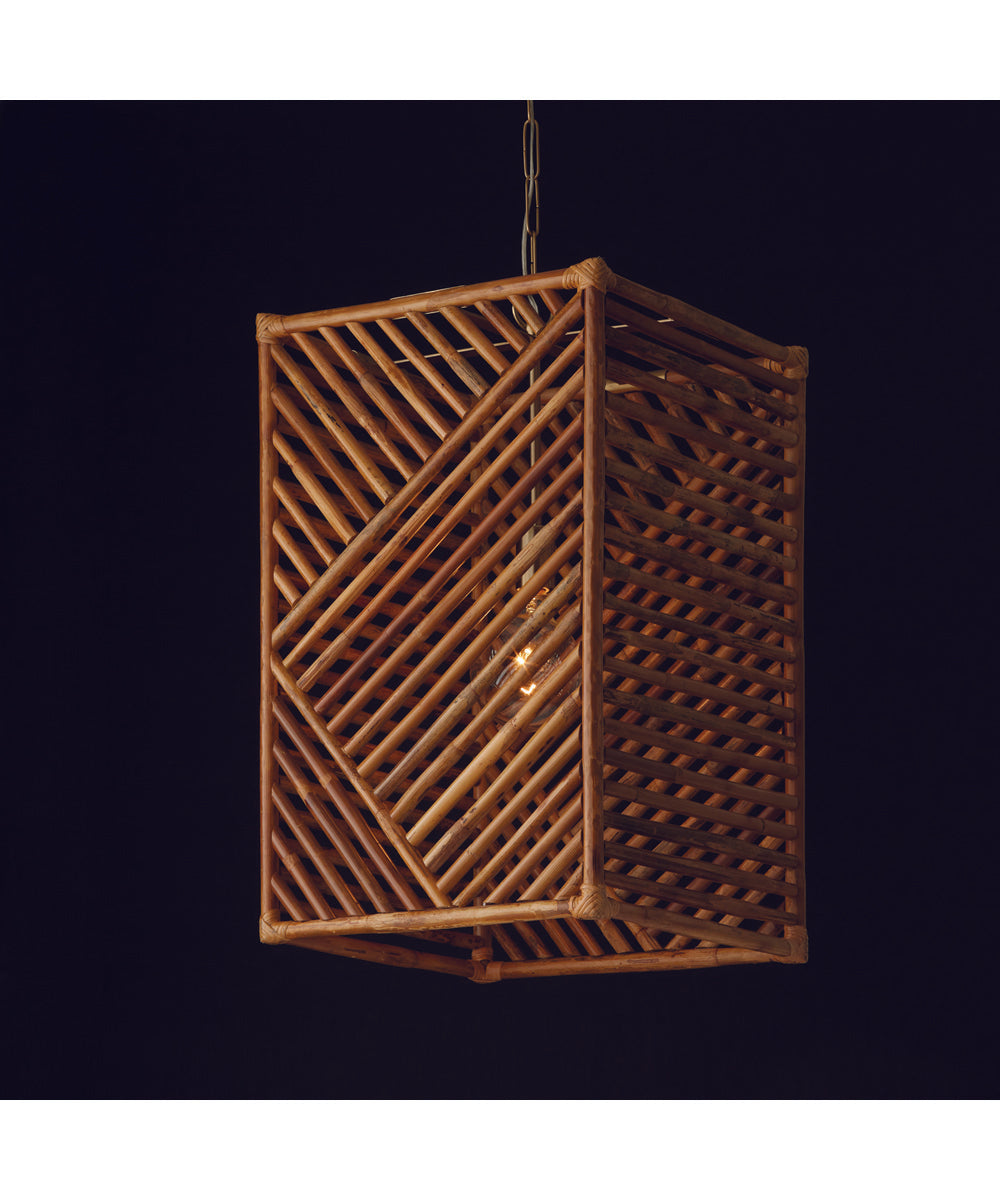 The Soleil 1-Light Foyer in Matte Brass is a stunning blend of structured artistry and natural beauty. This exquisite piece features hand-arranged natural bamboo, forming an intricate geometric design that adds a touch of organic elegance to any space. The hints of matte brass provide a soft, captivating look, making it a perfect addition to modern, rustic, or bohemian interiors.