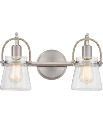 Embrace transitional design with the Stafford collection of bath and vanity lights. Curved Brushed Nickel arms and coastal inspired braided rope accents accentuate clear seeded glass shades. Choose from two, three or four lights in this versatile collection to enhance your bathroom decor today.