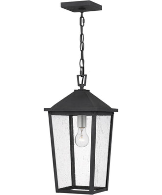 Clear seeded glass gives Stoneleigh a touch of whimsy. In a mottled black finish, this pendant design is otherwise stately and handsome. Suspend it within a portico to welcome guests in refined fashion - or hang inside your kitchen - it's your choice.