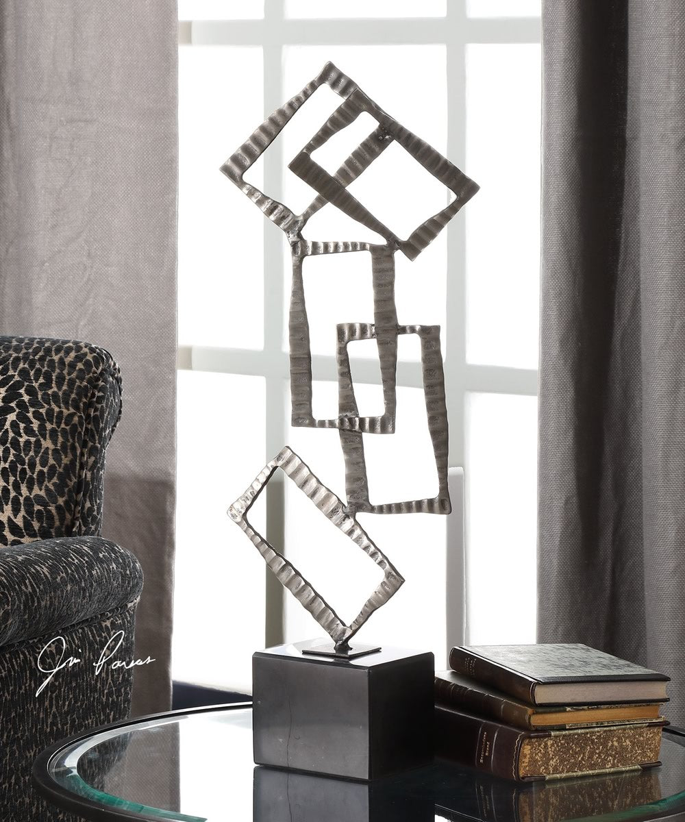 Randomly Stacked, Crimped Edge, Cast Iron Rectangles Finished In A Lightly Antiqued Brushed Nickel, Displayed On A Black Marble Base.Uttermost's Accessories Combine Premium Quality Materials With Unique High-style Design.With The Advanced Product Engineering And Packaging Reinforcement, Uttermost Maintains Some Of The Lowest Damage Rates In The Industry. Each Product Is Designed, Manufactured And Packaged With Shipping In Mind.