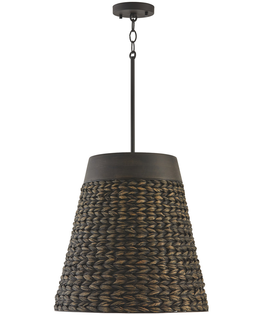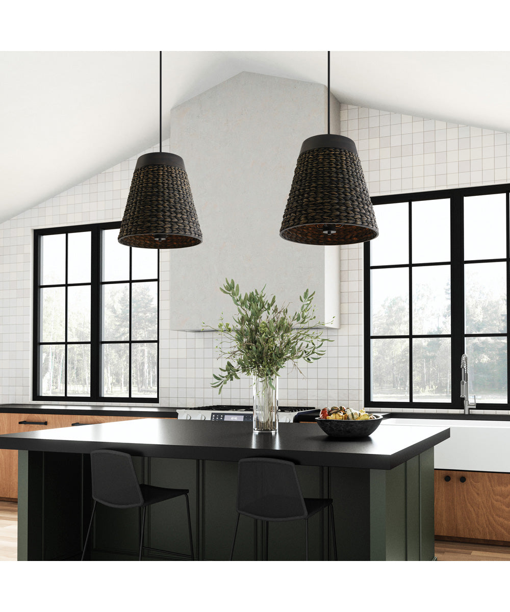 The classic style and timeless texture create the Tallulah Medium Pendant. The classic cone silhouette is given a fresh transformation with the hand-braided water hyacinth and band of mango wood. The dark tones of the Charcoal Wash finish add dimension and drama to any space.
