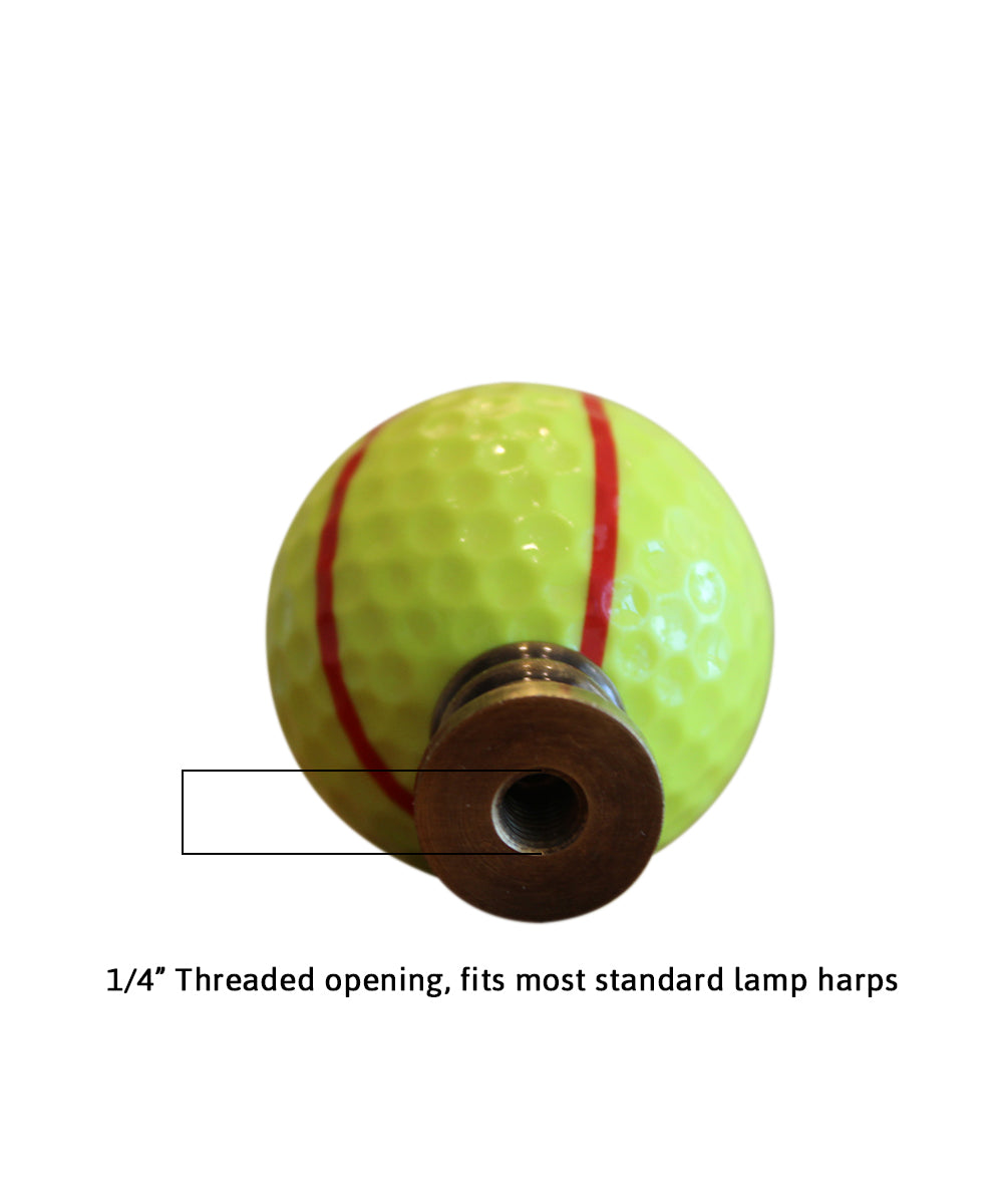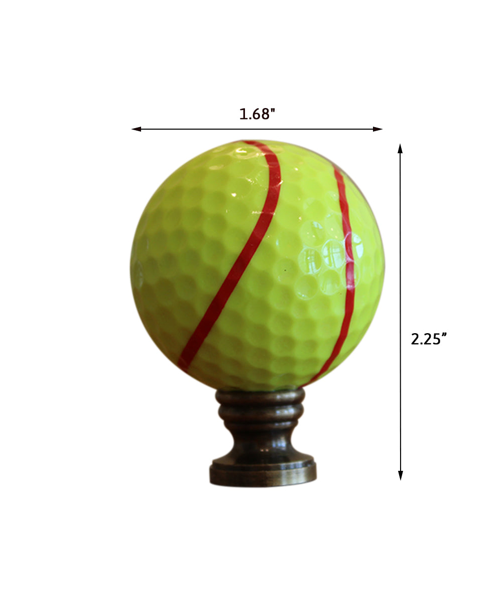 Showcase your passion for tennis with the Tennis Ball Lamp Finial. This unique and eye-catching finial is designed to resemble a tennis ball, complete with a bright yellow color and a distinctive red stripe. Crafted with attention to detail, this lamp finial is the perfect accessory to top off any table or floor lamp, adding a touch of sporty elegance to your home decor.