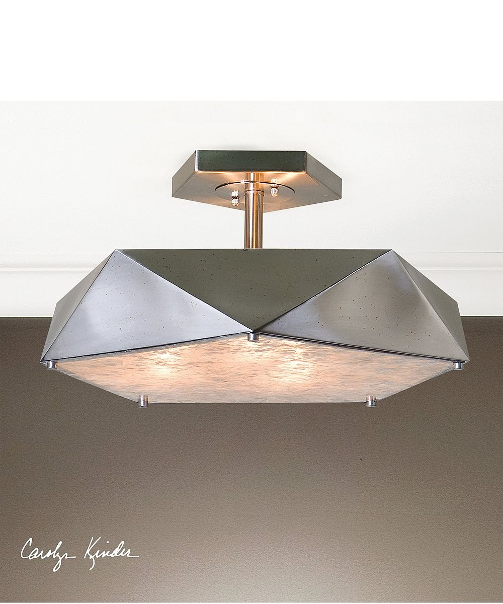 Distressed Antique Nickel Finish With A Champagne Mica Diffuser. Uttermost's Light Fixtures Combine Premium Quality Materials With Unique High-style Design. With The Advanced Product Engineering And Packaging Reinforcement, Uttermost Maintains Some Of The Lowest Damage Rates In The Industry. Each Product Is Designed, Manufactured And Packaged With Shipping In Mind.