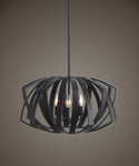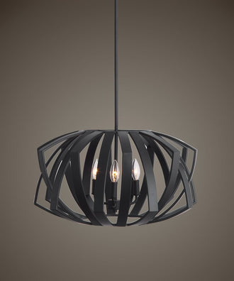 This pendant light boasts a distinctive geometric shape that is both eye-catching and functional. The open frame design allows the light to shine through beautifully, creating a stunning visual effect. The matte black finish enhances its modern appeal, while the three candelabra sockets provide ample illumination. The pendant measures 13 inches in height and 22 inches in width and depth, making it an ideal size for various room settings.
