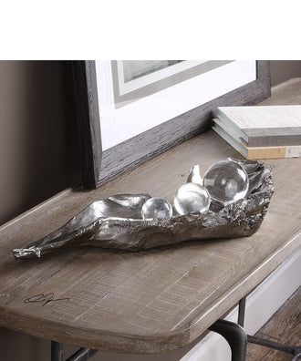 This Gorgeous Sculpture Simulates Peas Sitting On An Open Pod, Finished In A Tarnished, Metallic Silver With Clear Crystal Spheres.Uttermost's Figurines & Sculptures Combine Premium Quality Materials With Unique High-style Design.With The Advanced Product Engineering And Packaging Reinforcement, Uttermost Maintains Some Of The Lowest Damage Rates In The Industry. Each Product Is Designed, Manufactured And Packaged With Shipping In Mind.