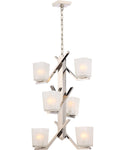 The 19"W Timone 6-Light Pendant in Polished Nickel by Nuvo Lighting is a stunning addition to any home or office space. This pendant light features a sophisticated design that blends modern aesthetics with timeless elegance. The polished nickel finish provides a sleek, reflective surface that enhances the overall look of the fixture, making it a perfect centerpiece for any room. The etched sandstone glass shades add a touch of softness and diffuse the light beautifully, creating a warm and inviting atmosphere.