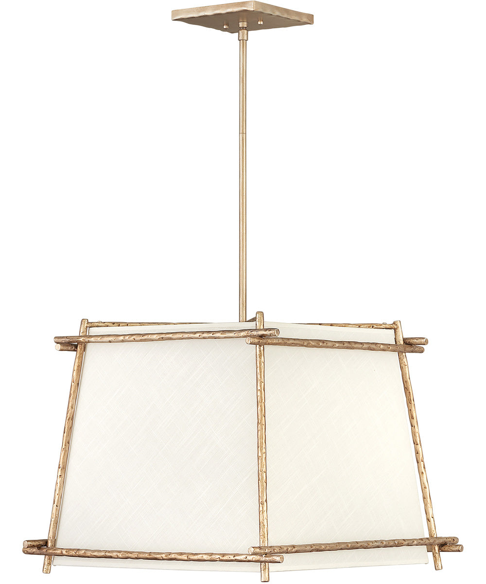 Pendant lights hang from a ceiling and place strong light over an island, table or furniture. Often the light is aimed downwards to help with tasks, but also outward to provide ambient lighting. A central stem or chain usually supports a single shade, although it may also support multple light bulbs. Pendants work well for dining and sitting areas. They can also be used in a hall or foyer if there is head-room. They are installed electrically and operated by a wall switch, and can also function as a centerpiece.