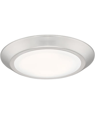 Available in four finishes and four sizes, the Verge flush mount is suited for a variety of room applications. In your choice of Earth Black, Brushed Nickel, White or Oil-Rubbed Bronze, it is featured in sizes of 7.5”, 12”, 16” or 20”. The domed white acrylic shade is illuminated with integrated LED technology and the thick canopy adds depth to the simple structure.