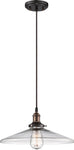 The 14"W Vintage 1-Light Pendant features a sleek and sophisticated design that effortlessly blends rustic and industrial aesthetics. The pendant showcases a clear glass shade that beautifully encases the included vintage-style lamp, creating a warm and inviting glow. The rustic bronze finish adds a touch of antique allure, making it a perfect fit for various interior styles, from farmhouse to industrial chic.
