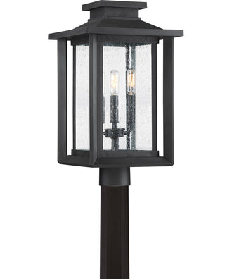 An outdoor post lantern is attached to the top of a metal post (not included). This is usually positioned at the entrance to a driveway, or in the middle of a large open space. It can also function to light an entry-way if placed close to the building. Light is emitted in all directions. As a hardwired fixture, outdoor post lights are electrically installed and may be operated by a wall switch or sensor. A larger yard may need more than one. They can be alternatively mounted onto a pier-mount adapater on top of a wall.