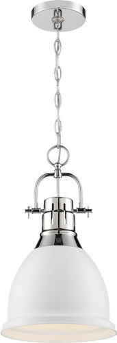 The 10"W Watson 1-Light Pendant in Polished Nickel with a Matte White Shade by Nuvo Lighting is the epitome of modern elegance. This pendant light features a sleek, polished nickel finish that exudes sophistication, while the matte white shade adds a touch of understated charm. The combination of these two finishes creates a visually appealing contrast that will enhance any space.