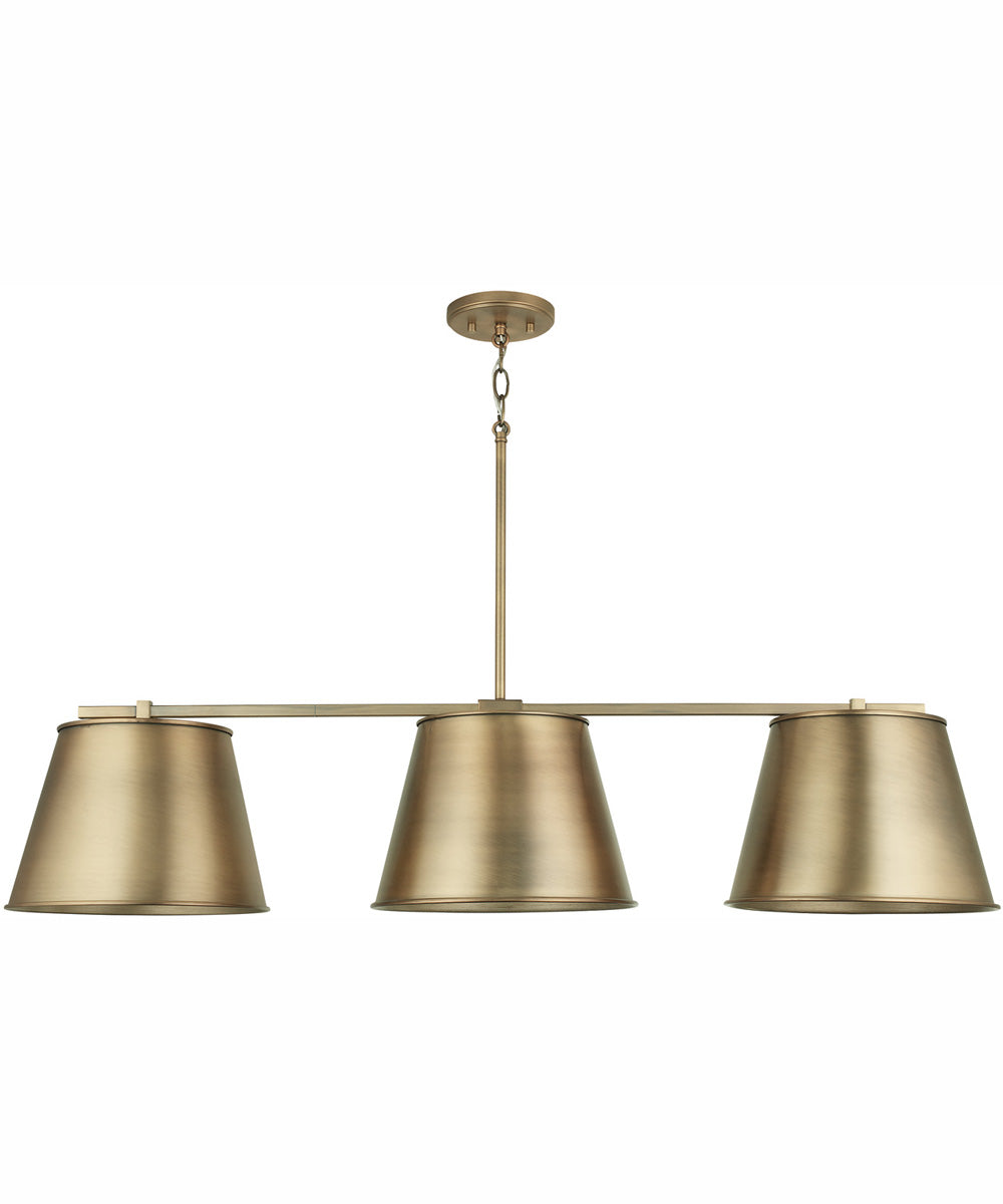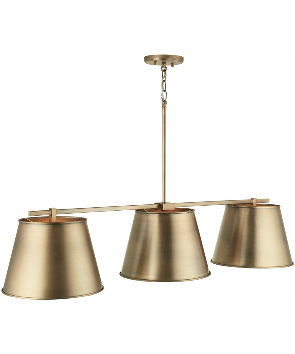 An island is a large countertop or prep-area usually in a kitchen, and sometimes with seating around it. To light the area for preparing and enjoying meals, an island light is a great choice. Usually these are longer or more linear light fixtures, with multiple lights in a row rather than in a circular arrangement. This helps to shine light across the entire length of the island. A beautiful island pendant or chandelier also acts as a stunning centerpiece for your kitchen. These hardwired light fixtures are installed electrically and operated by a wall switch.