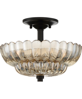 Featuring a beautifully scalloped shade, the Whitecap semi-flush is elegant and sophisticated. The amber glass flows beautifully upward towards the canopy. It is finished in a rich Mottled Cocoa.