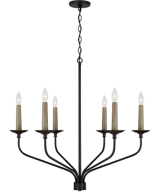 The Wilder 6-Light Chandelier in Matte Black brings a touch of classic elegance to any room. Its sophisticated design features a sleek matte black finish, which is powder-coated to provide a muted and neutral tone that seamlessly blends with various decor styles. The chandelier's structure is crafted from high-quality metal, ensuring durability and longevity. The six arms gracefully extend from the central column, each holding a candelabra-style light that mimics the charm of traditional candlelight.