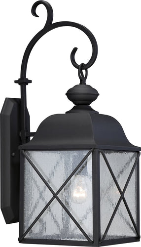 The 25"H Wingate 1-Light Outdoor Textured Black fixture by Nuvo Lighting is a perfect blend of elegance and functionality. Its design features a classic lantern shape with a modern twist, making it a versatile addition to any outdoor space. The fixture boasts a textured black finish that adds a touch of sophistication and timeless appeal. The clear seeded glass panels not only enhance the aesthetic appeal but also create a beautiful play of light and shadow, adding depth and character to your outdoor area.