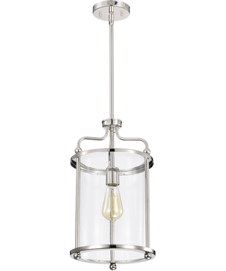 The Yorktown 1-Light Pendant in Polished Nickel is a stunning addition to any home or office space. This pendant light features a sleek, polished nickel finish that exudes modern elegance and sophistication. The clear glass shade adds a touch of transparency and lightness, making it perfect for contemporary and transitional decor styles. Its cylindrical shape and clean lines create a timeless look that will never go out of style.