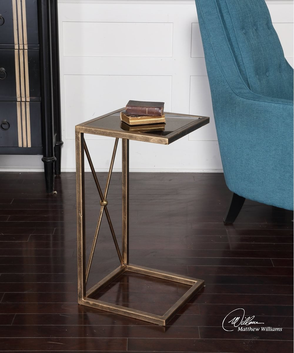 Antiqued Gold Metal With Black Colored Glass.Uttermost's Side Tables Combine Premium Quality Materials With Unique High-style Design.With The Advanced Product Engineering And Packaging Reinforcement, Uttermost Maintains Some Of The Lowest Damage Rates In The Industry. Each Product Is Designed, Manufactured And Packaged With Shipping In Mind.