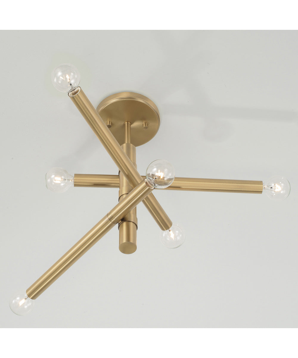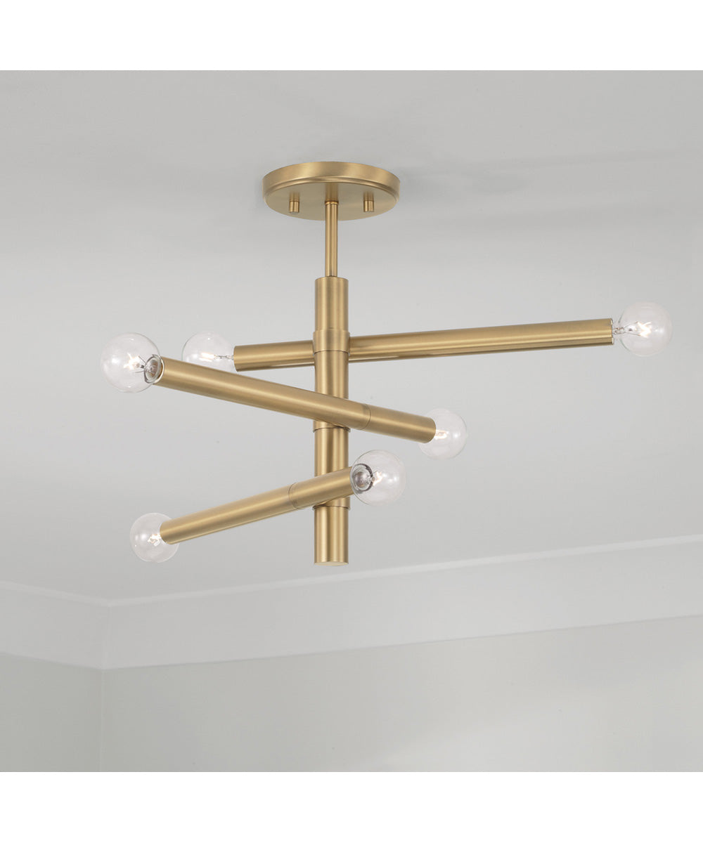 Elevate your home's interior with the Zane 6-Light Semi-Flush Aged Brass fixture. Its sleek design, durable construction, and versatile applications make it a must-have for any stylish home. Don't miss out on the opportunity to enhance your space with this stunning luminaire. Order now and experience the perfect blend of form and function.