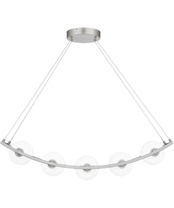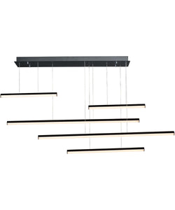 The 36"W Zemi 5-Light Pendant in Black is a stunning addition to any home or office space. Its sleek, modern design features a striking black finish that exudes sophistication and elegance. The pendant's geometric frame is crafted from durable steel, ensuring longevity and sturdiness while maintaining a lightweight feel. This contemporary piece is designed to make a bold statement, enhancing the aesthetic appeal of any room it graces.