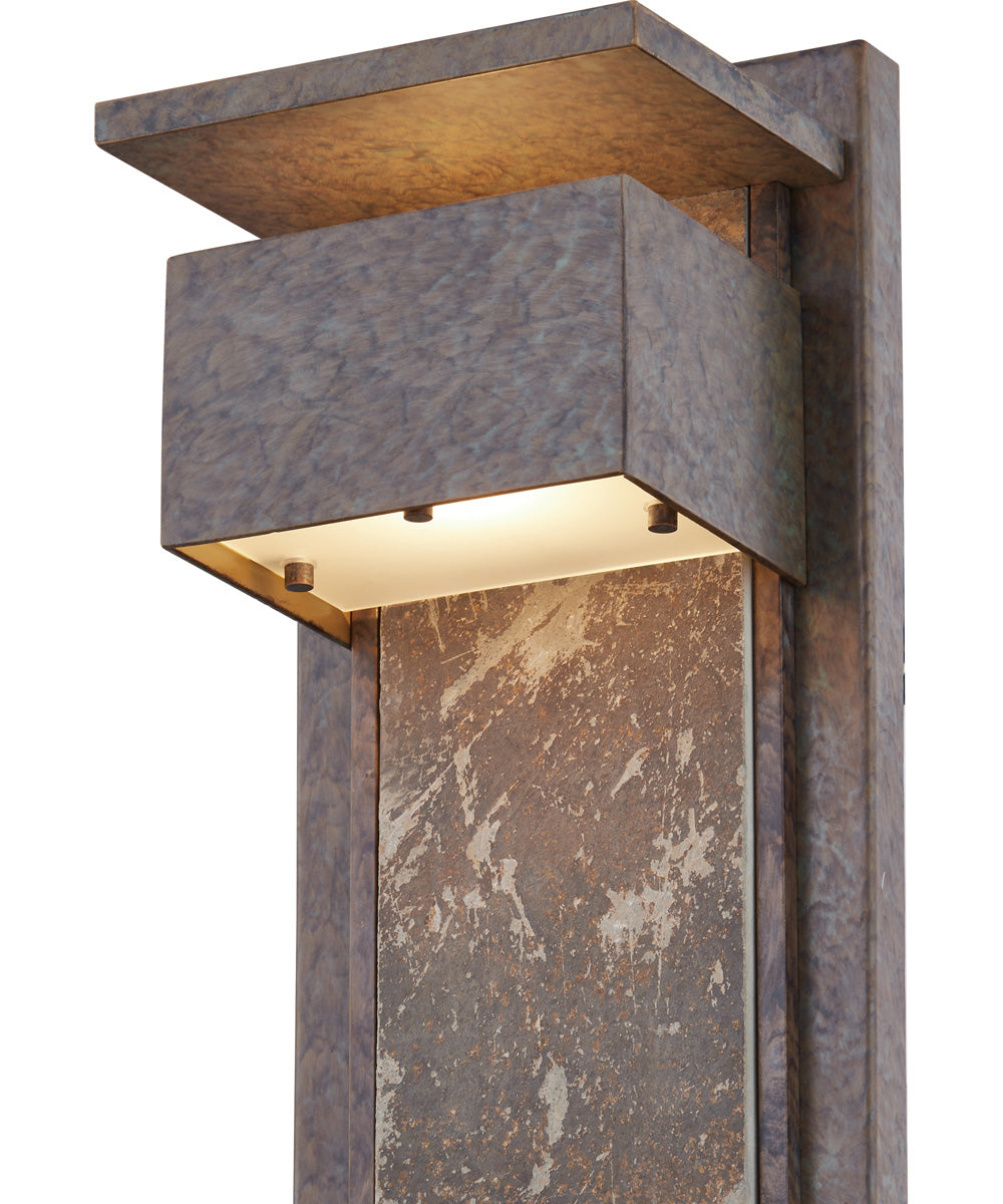 Enhance the exterior of your home with this unique contemporary design. It features a richly mottled backplate with a slate accent. Slate is a fine grained natural stone that was formed on ancient sea beds over millions of years. It is a stately and durable stone that will leave a lasting impression.